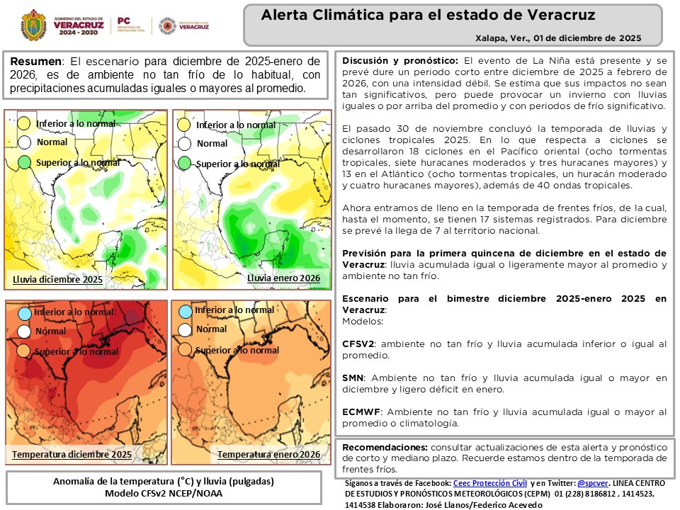 Escenario para el bimestre diciembre 2025-enero 2025 en Veracruz: