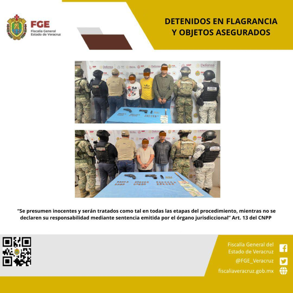 En dicho operativo se logró la detención en flagrancia de Vicente “N”, Miguel Ángel “N”, Rubén “N”, Carlos Eduardo “N” y Esmeralda “N”. Asimismo, se aseguraron cartuchos útiles, armas de fuego, armas blancas, sustancias granulada con características similares al cristal, dinero en efectivo, un cargador de arma de fuego y bolsas con una etiqueta alusiva a un grupo delictivo.