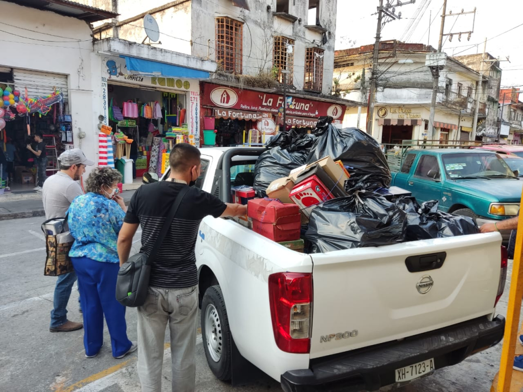 Trabajadores del área de Inspección de Comercio apoyaron a los locatarios Alba Naranjo Zurita, Julia Bolaños Buendía y Modesto Rivera Pile a trasladar su mercancía, para que mañana inicien a desmantelar los negocios para reubicarlos a un costado de la calle 7 entre avenidas 8 y 12, a fin de permitir el paso vehicular.