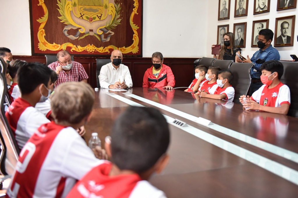 En reunión con la Selección Infantil Élite previo a representar a Xalapa en el puerto de Veracruz, el Edil deseó al conjunto de futbolistas el mayor de los éxitos y comprometió todo el apoyo para que, a través del deporte, se avance hacia la conformación de una mejor sociedad.