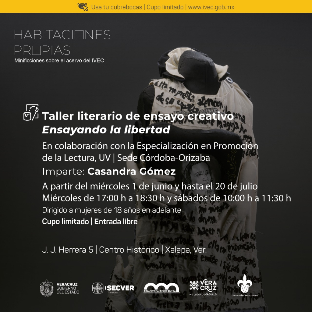 Xalapa, Ver., 18 de mayo de 2022.- En el marco del proyecto Habitaciones propias. Minificciones sobre el acervo del IVEC y la exposición Vístome. Palabras entretejidas, el Instituto Veracruzano de la Cultura, en coordinación con la Universidad Veracruzana, invita a las mujeres mayores de 18 años a participar en el taller presencial “Ensayando la libertad”.