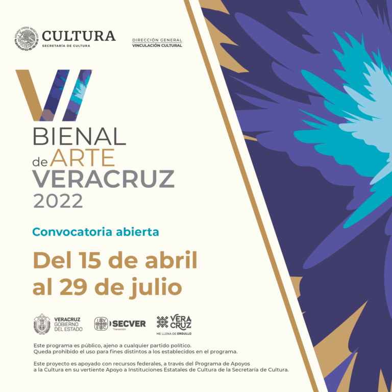 El Instituto Veracruzano de la Cultura (IVEC), con el apoyo de la Secretaría de Cultura, convoca a la comunidad artística a la sexta emisión de la Bienal de Arte Veracruz 2022. En este marco tendrán lugar un certamen artístico, una exposición itinerante, una jornada de actividades académicas y la publicación de un catálogo digital.