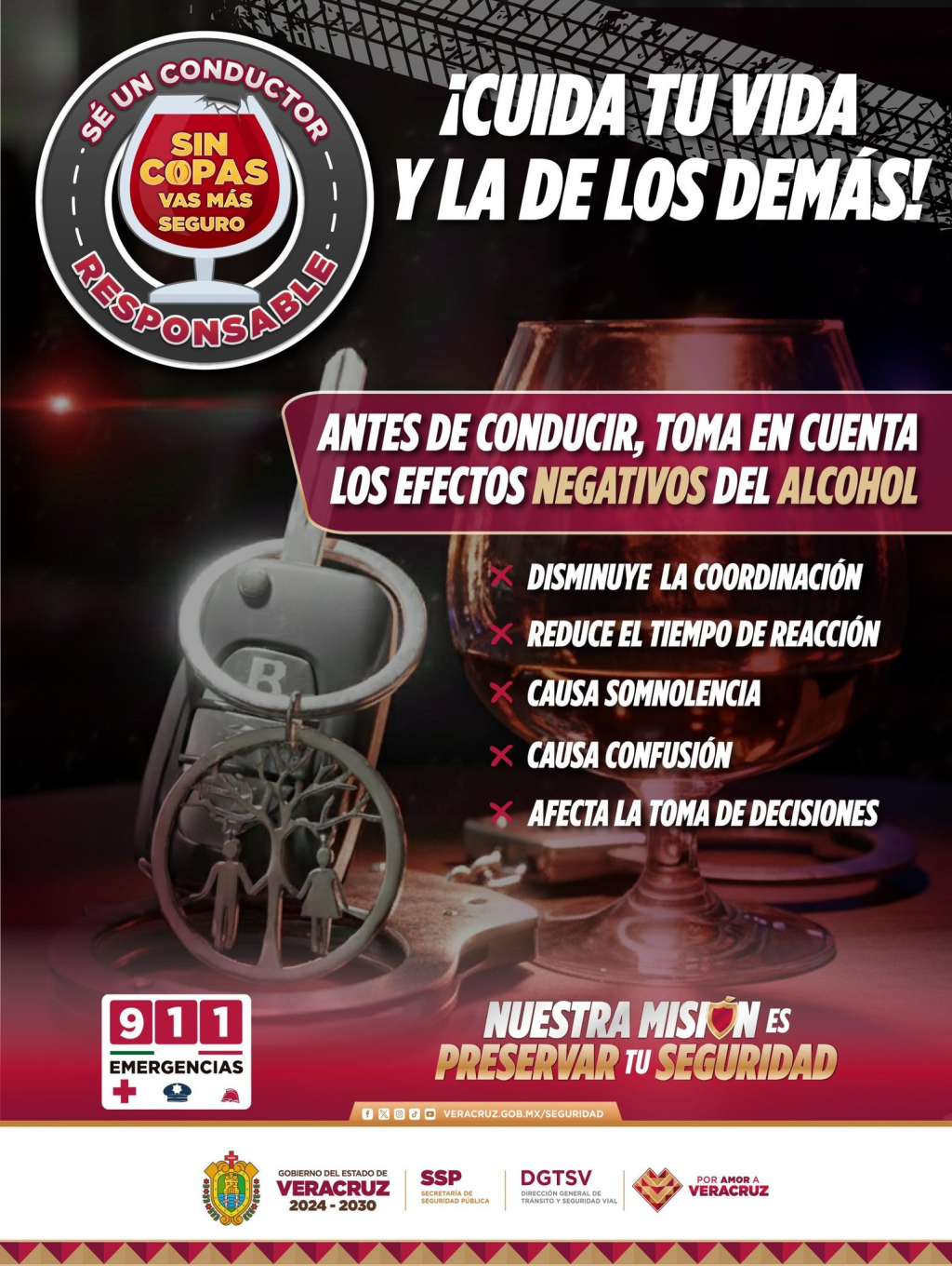 Por ti, por los demás, sé un conductor responsable.