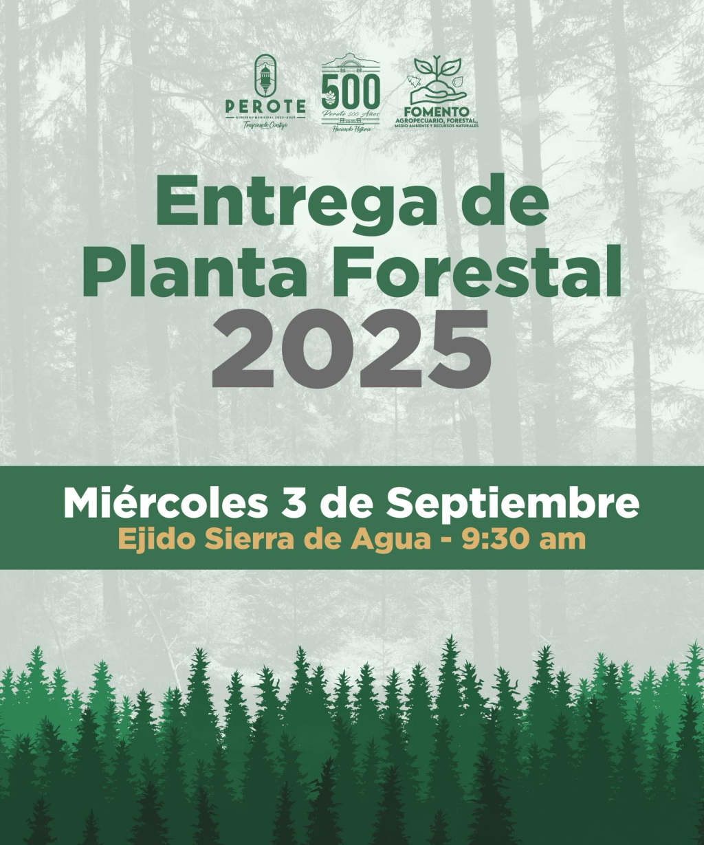 Este miércoles 3 de septiembre te esperamos en el Ejido Sierra de Agua a las 9:30 a.m. para participar en la entrega de planta forestal.