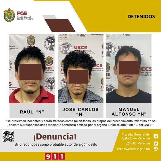 La Fiscalía General del Estado informa, que derivado de trabajos de investigación, elementos de la Policía Ministerial, detuvieron a Raúl “N”, Manuel Alfonso “N” y José Carlos “N”, este último sobrino de la víctima, por su presunta participación en la desaparición de Sara Hilda “N”, hechos suscitados en la ciudad de Xalapa.