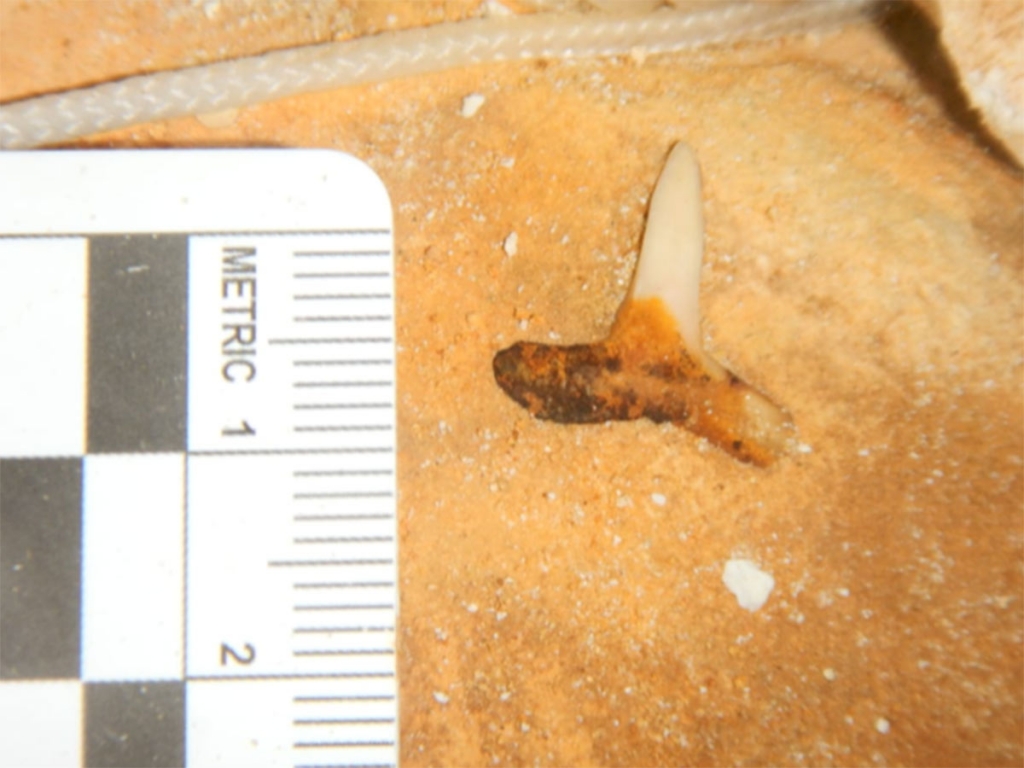 Entre las paredes del cenote se encontró la presencia de dientes de tiburón fosilizados que podrían corresponder a la familia de los megalodones, tiburones prehistóricos gigantes que vivieron hace millones de años.