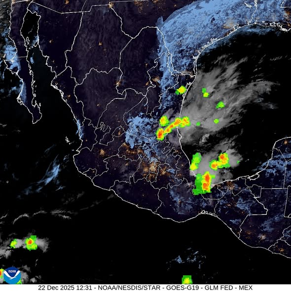 #AvisoEspecial), norte, oriente y sureste de Puebla, norte, noreste y oriente de Oaxaca, occidente de Tabasco, norte y oriente de Chiapas, sur de Campeche y centro-sur de Quintana Roo. En el centro y sur del territorio mexicano se esperan lluvias ligeras a moderadas, mientras que en el noroeste, norte y occidente el potencial será bajo o nulo.