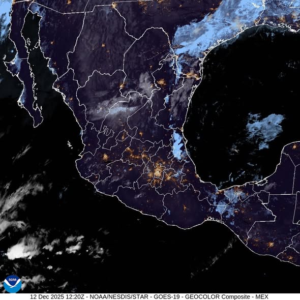 Esta mañana, en la imagen de satélite se observa cielo medio nublado a nublado en sectores del norte de la entidad veracruzana y en el resto del estado despejado a medio nublado. Es probable que en sectores del norte y sur aún estén presentes bancos de niebla o neblina, mismos que perderán densidad conforme avance la mañana.