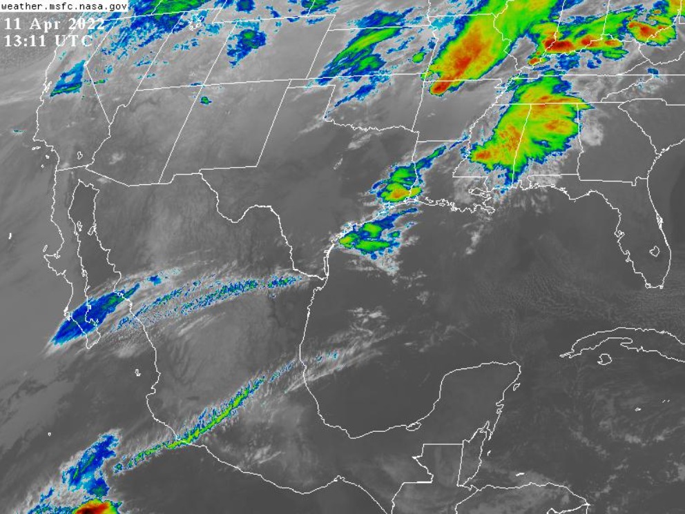 En las próximas 24 horas existe la probabilidad de lluvias (y tormentas) aisladas en entidades del norte, noreste, centro, este, sur y sureste, con los máximos acumulados en el oeste de Durango, sur de Nuevo León, Ciudad de México, sur de Hidalgo, Tlaxcala, Puebla, montañas de Veracruz, norte-este de Michoacán, Morelos, oeste de Oaxaca y centro de Chiapas. En el resto de la República Mexicana será baja o nula. Los valores de la temperatura máxima continúan en aumento en gran parte del país, esperándose los máximos en Sinaloa, Nayarit, Jalisco, suroeste de Guanajuato, Colima, Michoacán, Guerrero, Morelos, suroeste de Puebla, Oaxaca, Chiapas, noreste de Coahuila, Nuevo León, Tamaulipas, sureste de San Luis Potosí, Veracruz, Tabasco y la Península de Yucatán. Por la noche y madrugada continúa el frío, especialmente en entidades del noroeste, norte y centro, persistiendo las heladas en la Sierra Madre Occidental, y extendiéndose a Baja California. En el litoral y Golfo de México, se prevé viento del Sur, Sureste y Este con rachas de 45 a 60 km/h. En el litoral del Pacífico Mexicano se prevé viento variable de 20 a 35 km/h con rachas de 40 a 55 km/h en estados del noroeste del país.