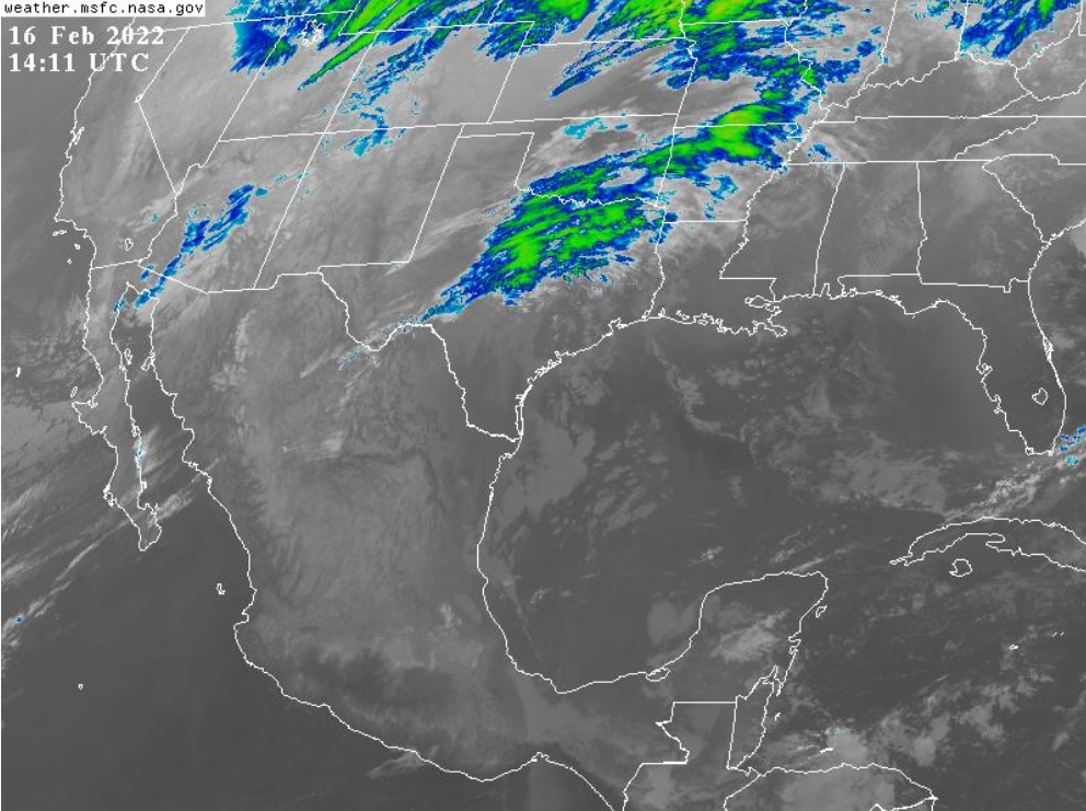 En las próximas 24 horas se espera que la probabilidad de lluvias (y tormentas) continúe baja en todo el país, y únicamente persista en el extremo noroeste (donde no se descartan nevadas en montañas) y en Quintana Roo, con eventos muy aisladas en Guerrero y Puebla. Asimismo, seguirán las nieblas eventuales sobre montañas del noroeste, oriente y sur, así como en algunas llanuras y costas. Los valores de la temperatura máxima muestran tendencia a seguir aumentando en todo el territorio nacional, excepto en el noroeste donde se pronostica persista el descenso, previéndose los más bajos en Baja California, Baja California Sur, Sonora, Chihuahua, Durango, y algunas entidades del centro; mientras que los máximos se esperan en Nayarit, oeste de Jalisco, Colima, Michoacán, Guerrero, Morelos, suroeste de Puebla, Nuevo León, Tamaulipas y costas de Oaxaca y Chiapas. Por la noche y madrugada continuará el frío en entidades del altiplano y zonas serranas, siendo más intenso en las del noroeste donde persistirán las heladas más fuertes especialmente en sierras de Baja California y Madre Occidental. En el litoral y Golfo de México, el viento dominará del Sur, Sureste, Y Este de 20 a 35 km/h con rachas de 45 a 60 km/h. En el litoral del Pacífico Mexicano se espera viento del noroeste y suroeste con rachas de 55 a 75 km/h en entidades del noroeste (mayores en estado del norte), y variable de 20 a 35 km/h en el resto, excepto en el istmo y Golfo de Tehuantepec, donde el NORTE, continúa perdiendo intensidad.