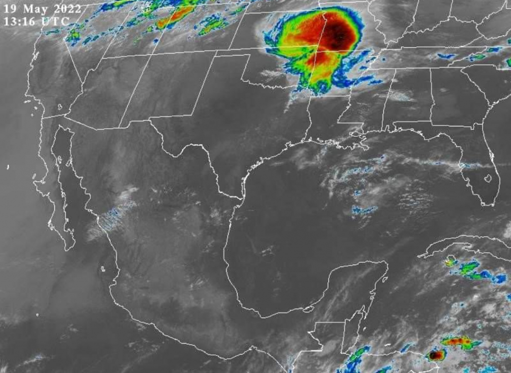 En las próximas 24 horas se espera que la probabilidad de lluvias y tormentas sea baja y sólo se presenten en regiones aisladas de Nuevo león, Tamaulipas, San Luis Potosí, Guanajuato, Querétaro, Estado de México, montañas de Veracruz, Oaxaca y Chiapas. Por otra parte, se prevé continúe el ambiente caluroso a muy caluroso en la mayor parte del país, con los valores de la temperatura máxima más altos en Sonora, norte de Sinaloa, Nayarit, centro-norte de Jalisco, Michoacán, Guerrero, Morelos, este de Oaxaca, regiones de Chiapas, gran parte de Chihuahua, Coahuila, Nuevo León, Tamaulipas, centro-sureste de San Luis Potosí, Veracruz, Tabasco y estados de la Península de Yucatán. Mientras tanto, las temperaturas mínimas más bajas se esperan en entidades del noroeste, norte y centro del país. En el litoral y Golfo de México, se prevé viento del Sur, Sureste, Este y Noreste de 20 a 35 km/h con rachas de 50 a 65 km/h en el litoral de Texas y en la Sonda de Campeche. En el litoral del Pacífico Mexicano se prevé viento del Noroeste y Oeste de 20 a 35 km/h con rachas de 30 a 45 km/h en costas de la Península de Baja California.