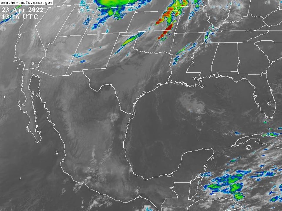 En las próximas 24 horas se esperan lluvias y tormentas aisladas en regiones del noreste, centro, este, sur y sureste del país con los máximos acumulados en el sureste de Coahuila, centro-sur de Nuevo León, norte de San Luis Potosí, Sureste de Guanajuato, sur de Querétaro, centro y sur de Veracruz, Oaxaca, y sectores de la Península de Yucatán. El calor presentará poco cambio en la mayor parte del país, con los valores más altos de la temperatura máxima en Sonora, Sinaloa, Nayarit, Jalisco, suroeste de Guanajuato, Colima, Michoacán, Guerrero, Morelos, suroeste de Puebla, Oaxaca, Chiapas, centro-este de Chihuahua, noreste de Durango, Coahuila, Nuevo León, Tamaulipas, Veracruz, Tabasco y entidades de la Península de Yucatán. Por otra parte, las temperaturas mínimas más bajas se prevén en entidades del noroeste, norte y centro del país, persistiendo la probabilidad de heladas ligeras en la Sierra Madre Occidental. En el litoral y Golfo de México, se prevé viento del Sureste, Este y Noreste de 20 a 35 km/h con rachas de 40 a 55 km/h en el litoral de Texas-norte de Tamaulipas, y sonda de Campeche por la tarde-noche. En el litoral del Pacífico Mexicano se prevé viento del Noroeste y Oeste 20 a 35 km/h con rachas de 40 a 55 km/h en la Península de Baja California. Viento del Oeste con rachas de 50 a 65 km/h por la tarde y noche es posible en la Mesa del Norte.
