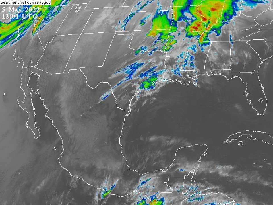 En las próximas 24 horas se espera baja probabilidad de lluvias y tormentas, y sólo se presenten en regiones del noreste de Coahuila, Nuevo León, suroeste de Tamaulipas, Querétaro, Tlaxcala, Hidalgo, Estado de México, zonas del Valle de México, norte de Puebla, montañas de Veracruz, Chiapas y costas de Quintana Roo. En el resto del país, será bajo o nulo. Por otra parte, se prevé continúe el ambiente caluroso a muy caluroso al mediodía y tarde en la mayor parte del país con los valores de la temperatura máxima más altos en Sonora, Sinaloa, Nayarit, Jalisco, suroeste de Guanajuato, Colima, Michoacán, Guerrero, Morelos, suroeste de Puebla, Oaxaca, Chiapas, noreste de Durango, Coahuila, Nuevo León, Tamaulipas, la mayor parte de San Luis Potosí, Veracruz, Tabasco y estados de la Península de Yucatán. Mientras tanto, las temperaturas mínimas más bajas se esperan persistan en entidades del noroeste, norte y centro del país, persistiendo la probabilidad de heladas ligeras en la Sierra Madre Occidental. En el litoral y Golfo de México, se prevé viento del Sureste, Este y Noreste de 20 a 35 km/h con rachas de 40 a 55 km/h en el litoral de Texas y norte de Tamaulipas, y mayores en la Sonda de Campeche. En el litoral del Pacífico Mexicano se prevé viento del Noroeste, Oeste y Suroeste de 20 a 35 km/h con rachas de 34 a 45 km/h en costas del oeste de la península de Baja California.