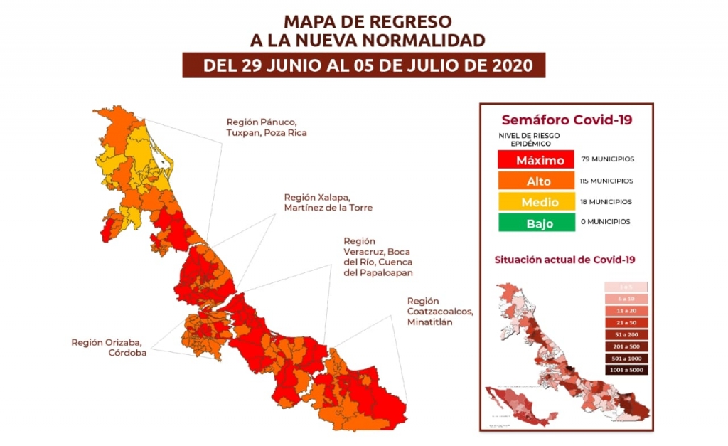 El Semáforo Regional de Veracruz para la semana del 29 de junio al 05 de julio continúa de la siguiente manera: