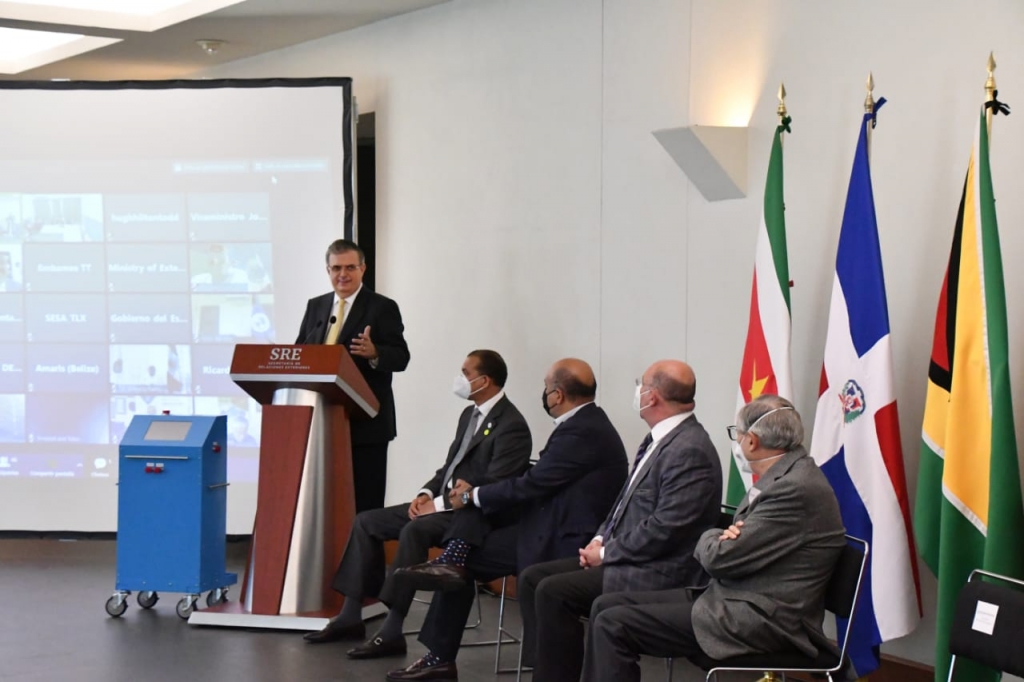 Con la presencia virtual de autoridades de países caribeños, del gobernador de San Luis Potosí, Juan Manuel Carrera López y del senador Héctor Vasconcelos Cruz, el canciller recordó que, ante la llegada de la pandemia a México, el presidente Andrés Manuel López Obrador instruyó a la SRE a importar ventiladores e insumos necesarios para cerrar el déficit de ese y otros insumos médicos. Esto se hizo principalmente en los mercados estadounidense y chino.