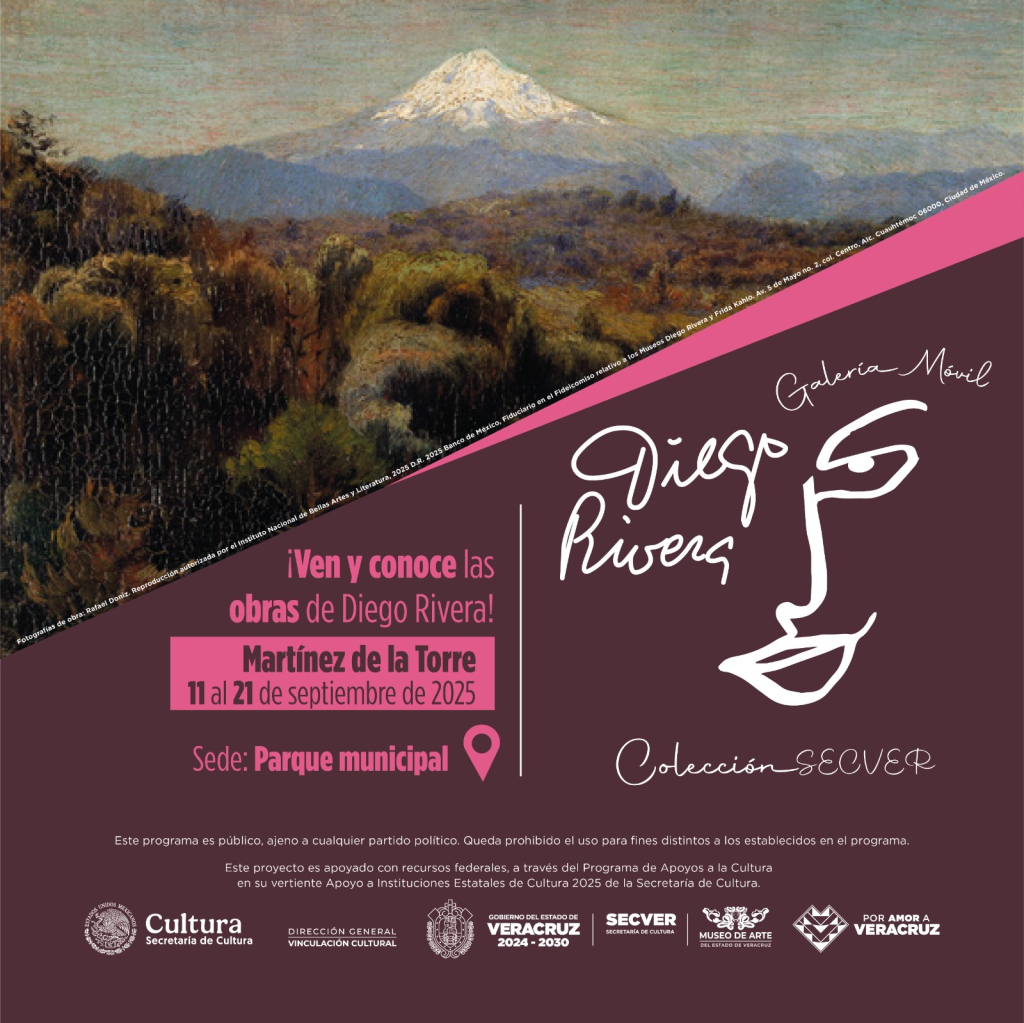 La Secretaría de Cultura de Veracruz (SECVER), en colaboración con el Ayuntamiento de Martínez de la Torre, invita a la Galería Móvil 2025, disponible durante los próximos 10 días, exhibirán reproducciones de obras de Diego Rivera en el Parque Municipal, a las cuales podrán acudir tanto los habitantes del municipio como de las zonas aledañas.