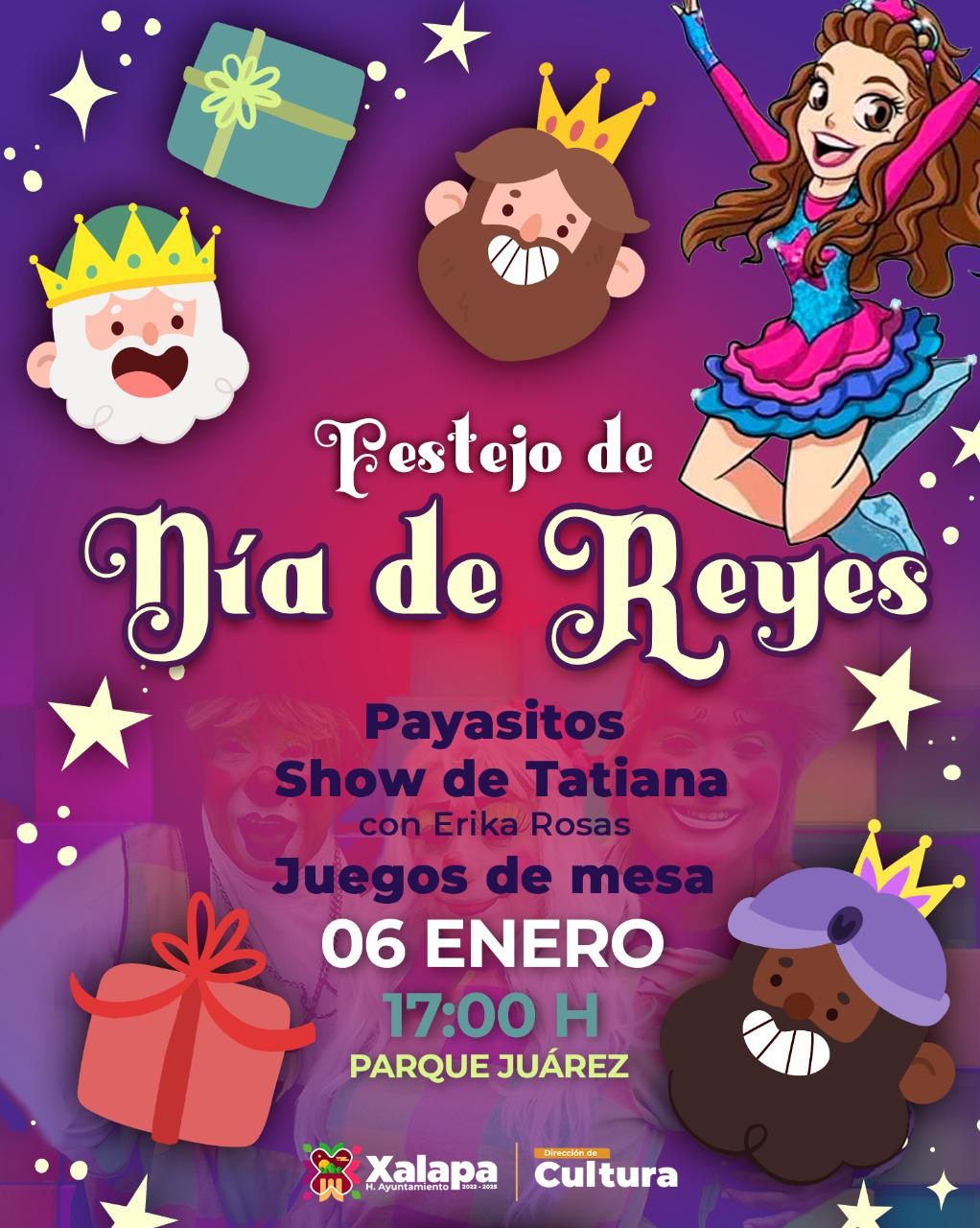 El viernes 6 de enero, la cartelera arrancará con un Festejo de Reyes a las 17:00 horas, en el parque Juárez, en el que se presentarán payasitos, el Show de Tatiana con Érika Rosas, y juegos de mesa para que los niños vivan este día con mucha diversión. También a las 19:00 horas, en el Teatro J.J. Herrera, la Orquesta Municipal de Xalapa presentará el concierto Temas de Películas, enfocado a Los Reyes en el Cine.