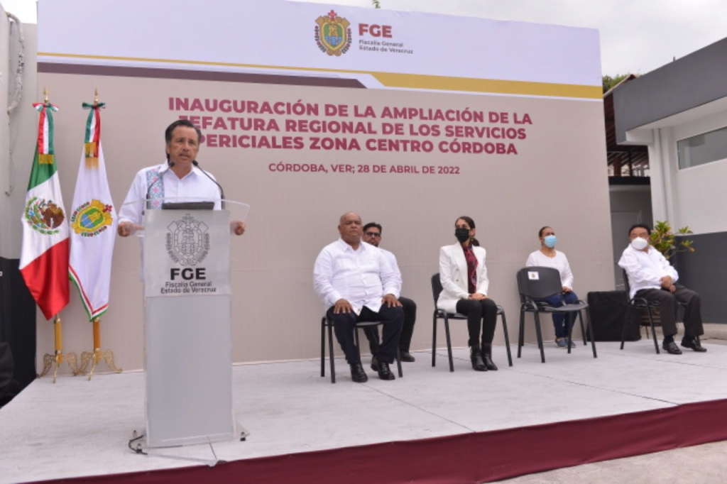 Córdoba, Ver., 28/04/22.- Desde hace tiempo quisimos una transformación en la Fiscalía General del Estado (FGE) y ya se nota la diferencia de cómo se recibió y cómo se encuentra; incluso, pronto estaremos inaugurando edificio en la sede, expresó el gobernador Cuitláhuac García Jiménez durante la apertura de las nuevas instalaciones de la Jefatura Regional de Servicios Periciales Zona Centro Córdoba.