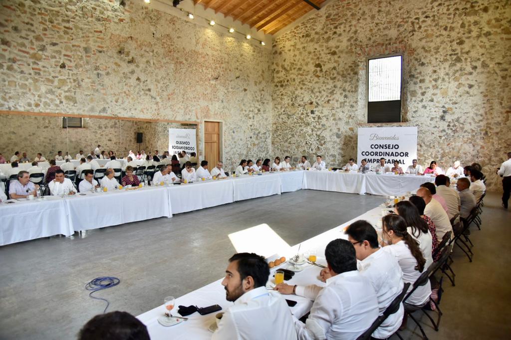 Durante esta primera reunión en la Ex-Hacienda San Francisco Toxpan, estuvieron presentes los presidentes del Consejo Coordinador Empresarial (CCE), Cámara Nacional del Comercio (Canaco), Canacintra y sus agremiados de Córdoba y Orizaba.