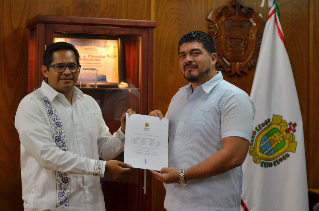 Xalapa, Ver., 19/04/22.- El secretario de Educación de Veracruz (SEV), Zenyazen Escobar García, entregó el nombramiento como Secretario Técnico del Consejo Interinstitucional Veracruzano de Educación (CIVE) a Ernesto Efrén del Moral Ventura.