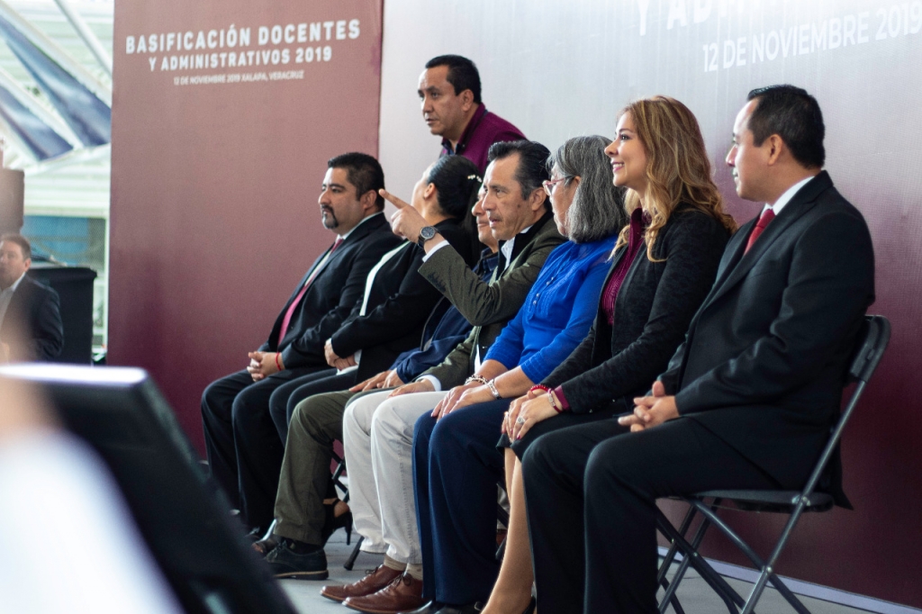 La Oficial Mayor de la Secretaría de Educación de Veracruz (SEV), Ariadna Selene Aguilar Amaya, acompañó al gobernador de Veracruz, Cuitláhuac García Jiménez, y al Secretario de Educación de Veracruz, Zenyazen Escobar García, a la entrega de “Basificación para Docentes y Administrativos”, como un reconocimiento a sus derechos laborales y a su trabajo incansable por contribuir al desarrollo de niñas, niños y jóvenes, de todos los niveles educativos del estado de Veracruz.