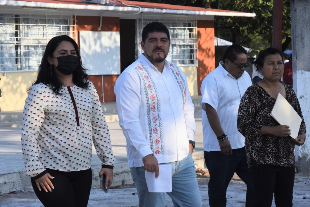 Posteriormente, acudió al Telebachillerato de la localidad “Arbolillo” del municipio de Alvarado, donde lo recibió la directora del centro educativo, Consuelo del Carmen Camacho Gil, para mostrarle el avance de la construcción de dos aulas didácticas y obra exterior que permitirán ofrecer mejores espacios a los 43 estudiantes matriculados.