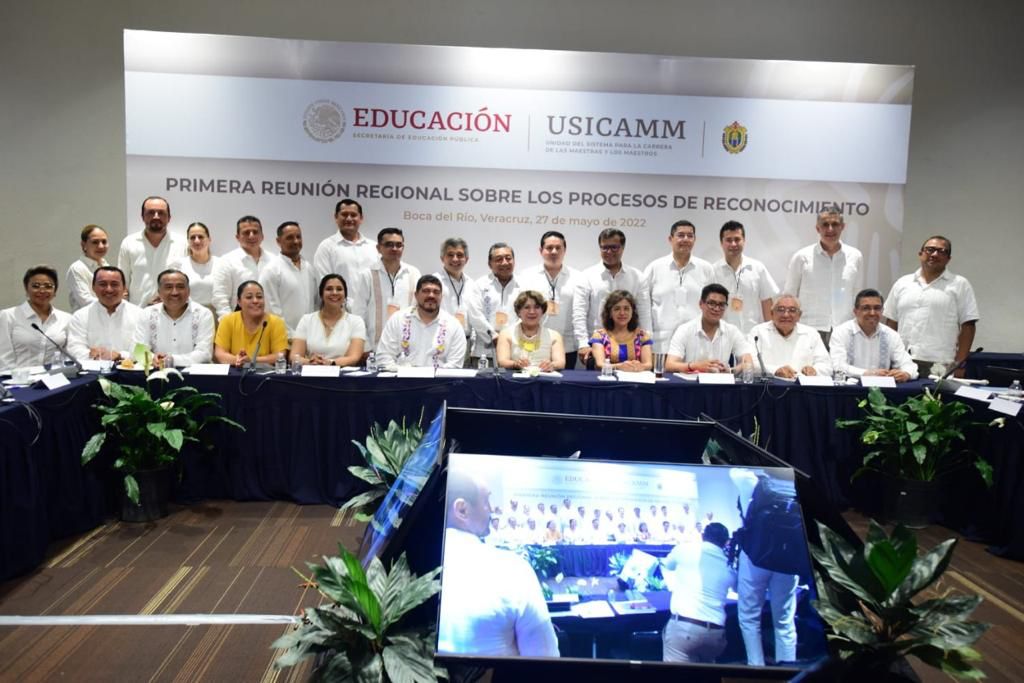 En presencia de la secretaria de Educación Pública, Delfina Gómez Álvarez, y la titular de la Unidad del Sistema para la Carrera de las Maestras y los Maestros (USICAMM), Adela Piña Bernal, el secretario de Educación de Veracruz, Zenyazen Escobar García, fue el encargado de iniciar las actividades encaminadas al intercambio de opiniones y puntos de vista relacionadas con el Acuerdo que contiene las disposiciones, criterios e indicadores para la realización de los procesos de reconocimiento, ciclo escolar 2022-2023.