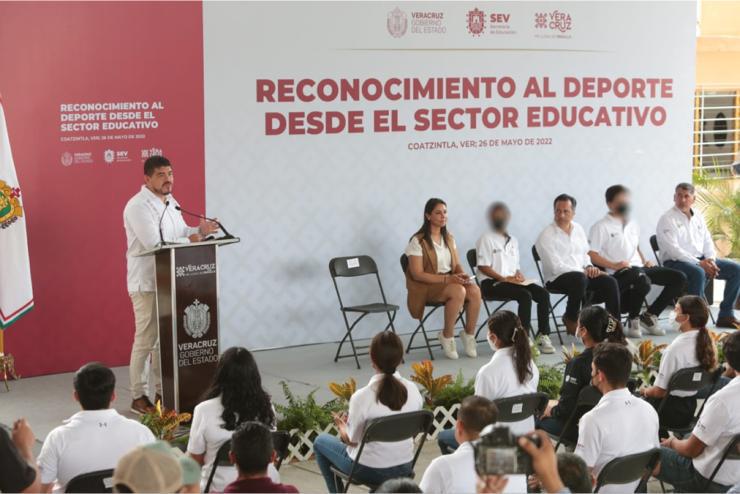 Coatztintla, Ver., a 26 de mayo de 2022.- “Cuando se maneja el dinero de forma transparente, los apoyos se pueden dar”, afirmó el secretario de Educación, Zenyazen Escobar García, al acompañar al gobernador Cuitláhuac García Jiménez a la Entrega de Reconocimientos por Desempeño a Deportistas de la Zona Norte, en donde anunció que, gracias a las gestiones e interés por transformar la educación, la entidad ejercerá 3 mil 400 millones de pesos para 14 mil escuelas dentro del Programa La Escuela es Nuestra.