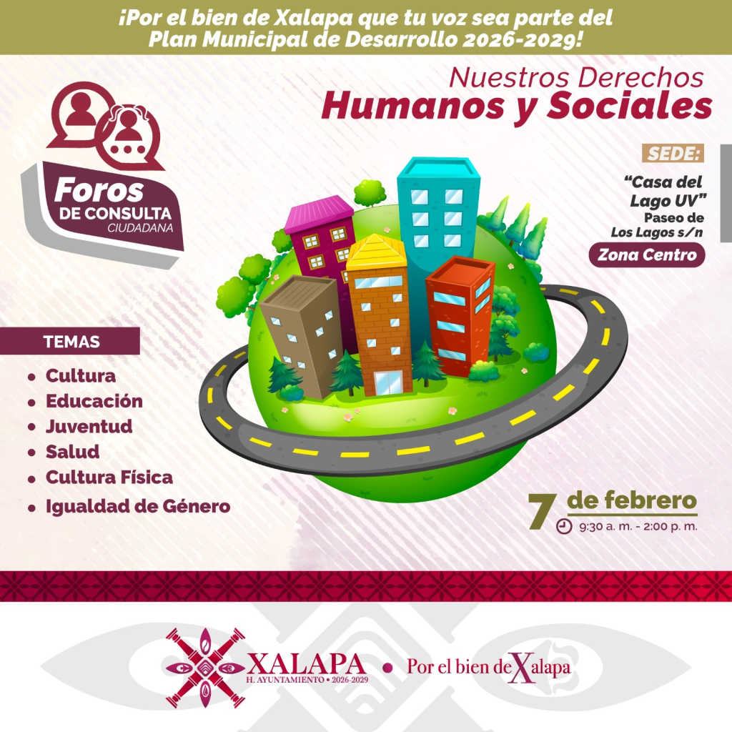 Xalapa, Ver., 3 de febrero de 2026.- Con el propósito de contar con un Plan Municipal de Desarrollo (PMD) que atienda las principales necesidades de la población y considere las propuestas de la sociedad, el próximo sábado 7 de febrero inician los foros de consulta par