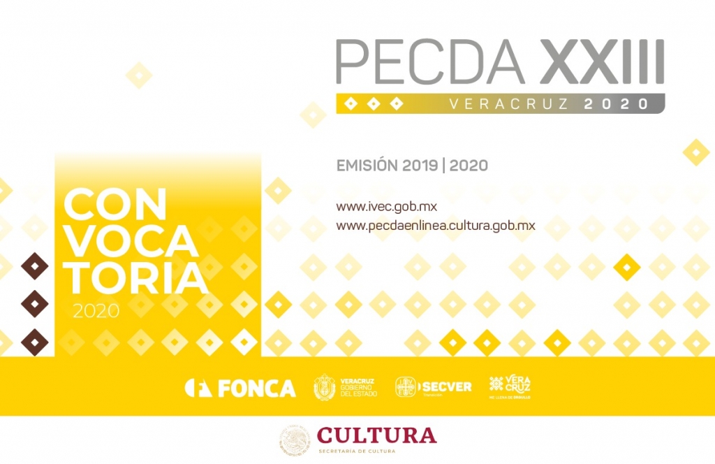 La Secretaría de Cultura federal, a través del Fondo Nacional para la Cultura y las Artes (FONCA), en colaboración con el Instituto Veracruzano de la Cultura (IVEC), invita a participar en el Programa de Estímulos a la Creación y Desarrollo Artístico de Veracruz (PECDA) 2019-2020.