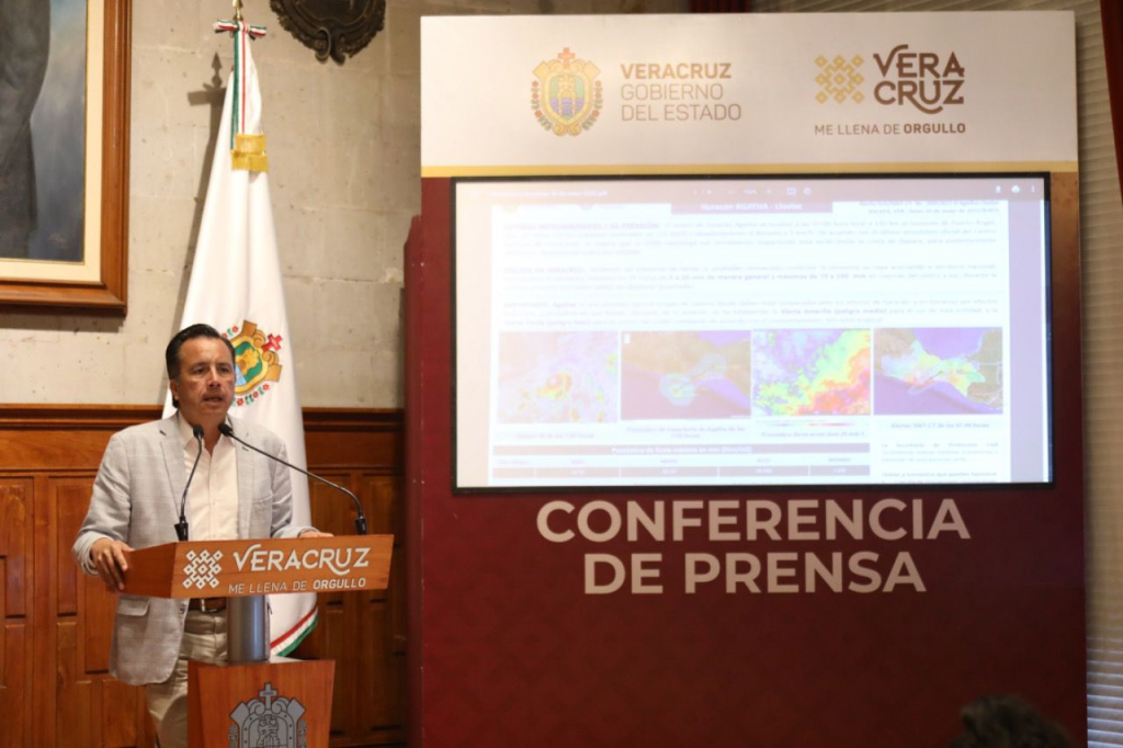 Xalapa, Ver., 30/05/22.- En conferencia de prensa el gobernador Cuitláhuac García Jiménez aseguró que por el momento no se prevé la suspensión de clases como consecuencia del ingreso del huracán “Agatha” y detalló, permanece al pendiente y en constante comunicación con los secretarios de Protección Civil, Guadalupe Osorno Maldonado y de Educación, Zenyazen Escobar García, a través del Comité Estatal de Emergencias.