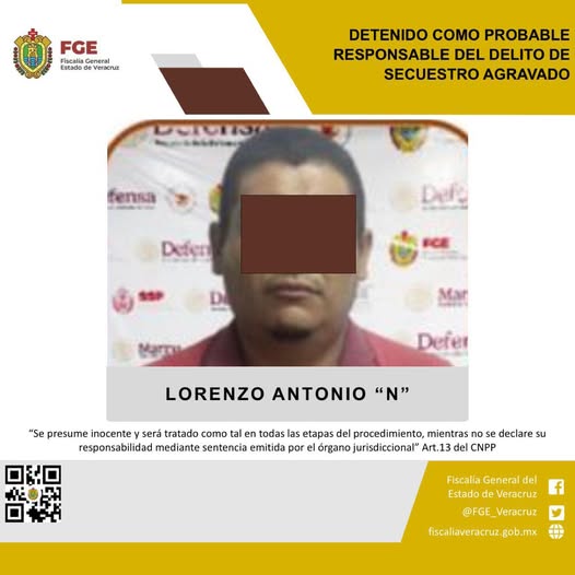 La Fiscalía General del Estado informa que, como resultado de una acción operativa conjunta entre la Unidad Especializada en Combate al Secuestro y la Extorsión y Unidad Especializada en Combate al Secuestro del Estado de Tamaulipas, cumplimentó orden de aprehensión en aquel estado, en contra de Lorenzo Antonio “N” como probable responsable del delito de secuestro agravado en agravio de la víctima N.H.G.