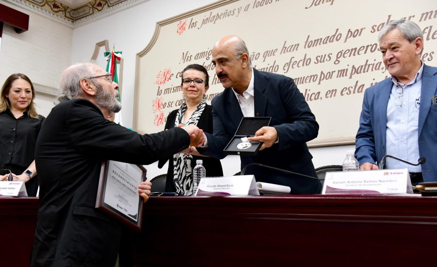 Por su trayectoria y ser un referente cultural que deja un gran legado en Xalapa, en Sesión Solemne de Cabildo el alcalde Ricardo Ahued Bardahuil entregó a Carlos Alberto Converso Prato la Medalla al mérito artístico “Juan Herrera Vásquez ‘Juanote’” 2024.