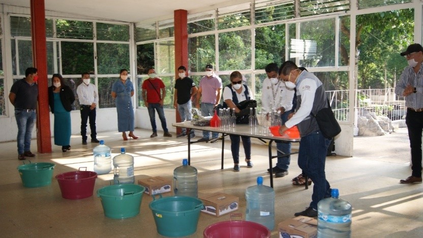 De igual forma, la VII de Orizaba evaluó el refugio temporal COVID en el Coliseo “La Concordia” y junto con el ayuntamiento de Nogales y voluntarios de 12 localidades, elaboró 95 litros de jabón líquido para manos.
