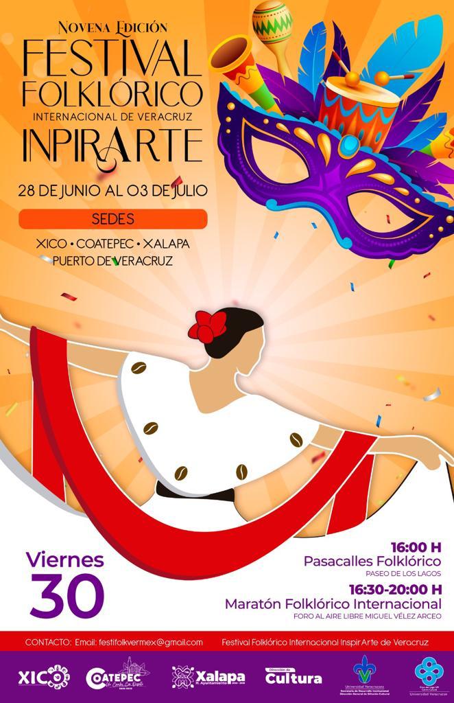 El municipio bailará al son de los ritmos y danzas tradicionales de Cuba, Costa Rica, Haití, Colombia y Argentina, al llevarse a cabo la Novena Edición del Festival Folklórico Internacional de Veracruz “Inspirarte”, del 28 de junio al 3 de julio en la capital y los municipios de Xico, Coatepec y Veracruz.