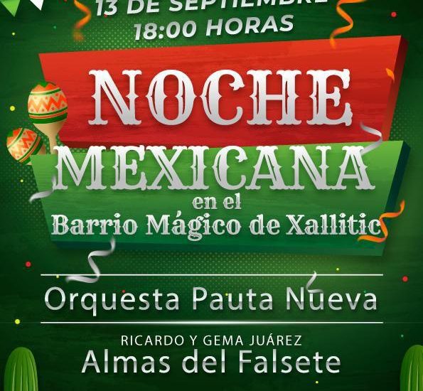 El viernes 13 de septiembre a las 18:00 horas, la Orquesta Pauta Nueva y Ricardo y Gema Juárez, “Almas del falsete”, pondrán su sabor a la “Noche Mexicana en el Barrio Mágico de Xallitic”; en paralelo, en el Paseo de los Atletas, “Arte Colectivo” y “Sonámbulo” participarán en los “Viernes de punchis punchis”.