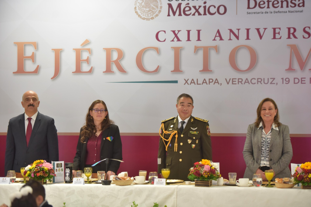 En representación de la LXVII Legislatura del estado de Veracruz, la presidenta de la Mesa Directiva, diputada Tanya Carola Viveros Cházaro, acudió a la conmemoración del CXII aniversario del Ejército Mexicano, acto encabezado por la gobernadora de Veracruz, Rocío Nahle García, en las instalaciones de la 26a zona militar El Lencero.