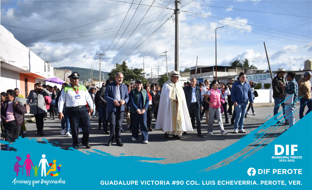 El Presidente Municipal de Perote, Delfino Ortega Martínez, acompañado por regidoras, sindica, el secretario del ayuntamiento y personal que integran la administración, participaron de este recorrido y la celebración de la misa.