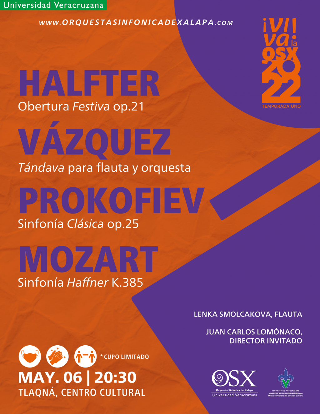 A continuación, la destacada obra para flauta y orquesta, Tándava, del compositor mexicano Hebert Vázquez. Esta hace una magistral referencia a una danza que realiza el Dios Hindú Shiva. La distinguida solista para esta pieza será la Mtra. Lenka Smolcakova, principal de flautas en la OSX.
