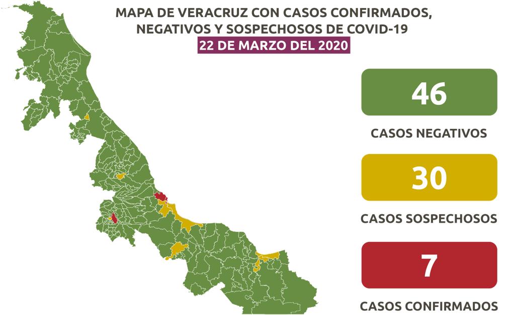 El número de positivos permanece en 7, de los que cuatro radican en Boca del Río, dos en Veracruz y uno en Ixtaczoquitlán; los pacientes de los dos primeros municipios están en cuarentena, asintomáticos, y al igual que sus allegados, con monitoreo diario hasta obtener el alta sanitaria.