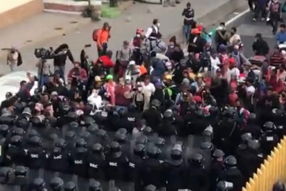 Omar García Harfuch, quien encabeza la dependencia, dijo que la policía intentó un diálogo con los migrantes, sin embargo, ellos se tornaron agresivos y comenzaron a lanzar objetos, piedras, palos y botellas contra los uniformados.