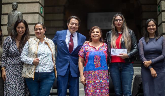 Acompañado de la subsecretaria de Educación Básica, Angélica Noemí Juárez Pérez; del titular de la Autoridad Educativa Federal en la Ciudad de México (AEFCM), Luciano Concheiro Bórquez; y del secretario de Educación, Ciencia, Tecnología e Innovación de la Ciudad de México, Pablo Enrique Yanes Rizo, el titular de la SEP y la jefa de Gobierno realizaron la entrega simbólica de cinco tarjetas del Bienestar a igual número de planteles de Educación Media Superior.