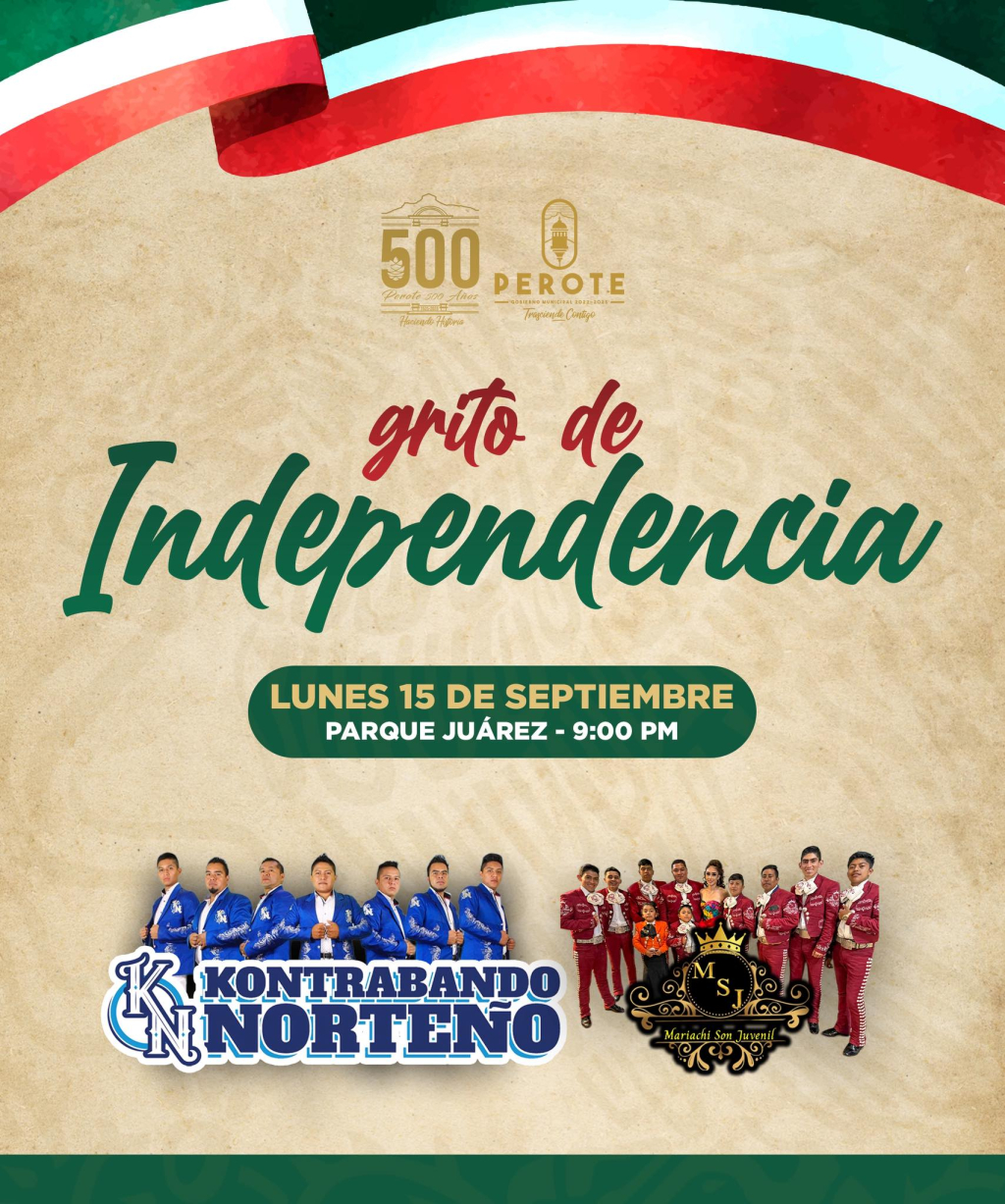 Este lunes 15 de septiembre acompáñanos en el Parque Juárez a las 9:00 PM para celebrar juntos el Grito de Independencia.