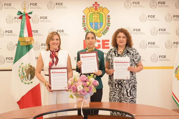 En Oficinas Centrales, la Fiscal General del Estado, Verónica Hernández Giadáns, presidió la ceremonia de Firma del Convenio de Colaboración entre el Instituto Veracruzano de las Mujeres (IVM) y la Fiscalía General del Estado de Veracruz (FGE), con la presencia de la Directora General del IVM, Zaira Fabiola del Toro Olivares.