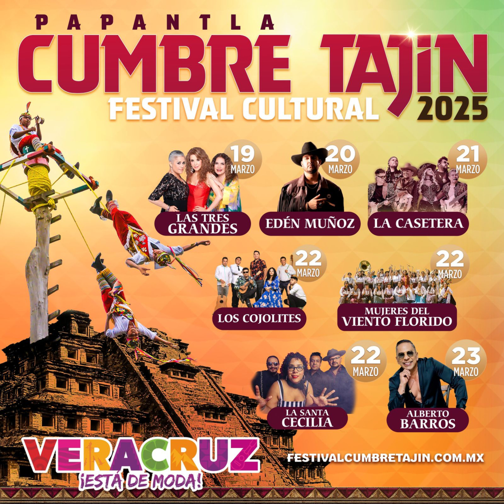 Veracruz se prepara para vivir una de sus celebraciones culturales más emblemáticas con Cumbre Tajín, que se llevará a cabo del 19 al 23 de marzo en Papantla, cuna de la cultura totonaca. Durante estos cinco días, los asistentes podrán disfrutar de una experiencia única con exposiciones gastronómicas, artesanales y artísticas, así como recorrer la zona arqueológica de El Tajín. Además de las actividades culturales y tradicionales, el Festival de la Identidad contará con un espectacular cartel musical, dado a conocer por la gobernadora Rocío Nahle García. •19 de marzo: Las Tres Grandes (Guadalupe Pineda, Tania Libertad y Eugenia León) •20 de marzo: Edén Muñoz •21 de marzo: La Casetera •22 de marzo: Los Cojolites, Mujeres del Viento Florido y La Santa Cecilia •23 de marzo: Alberto Barros Cumbre Tajín es una oportunidad para vivir la riqueza del Totonacapan, desde su cultura y tradiciones hasta su música y gastronomía. Como destacó la Gobernadora en sus redes sociales, el Festival sigue consolidando a Veracruz como un referente cultural y turístico.