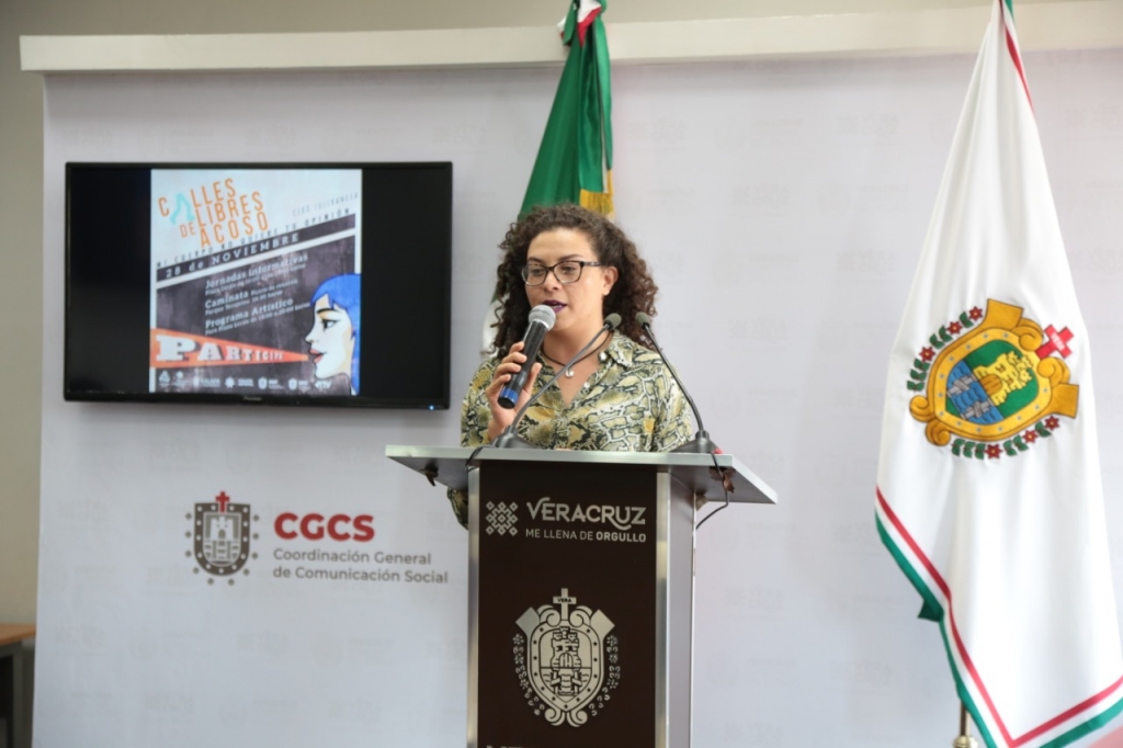 Como parte de la campaña internacional “16 días de activismo contra la violencia de género”, del movimiento mundial “Únete”, la Secretaría de Educación de Veracruz (SEV) presentó el programa artístico “Calles libres de acoso”, que iniciará el próximo 28 de noviembre, en coordinación con la Secretaría de Seguridad Pública (SSP), el Instituto Municipal de las Mujeres (IMMX) y Radiotelevisión de Veracruz (RTV).