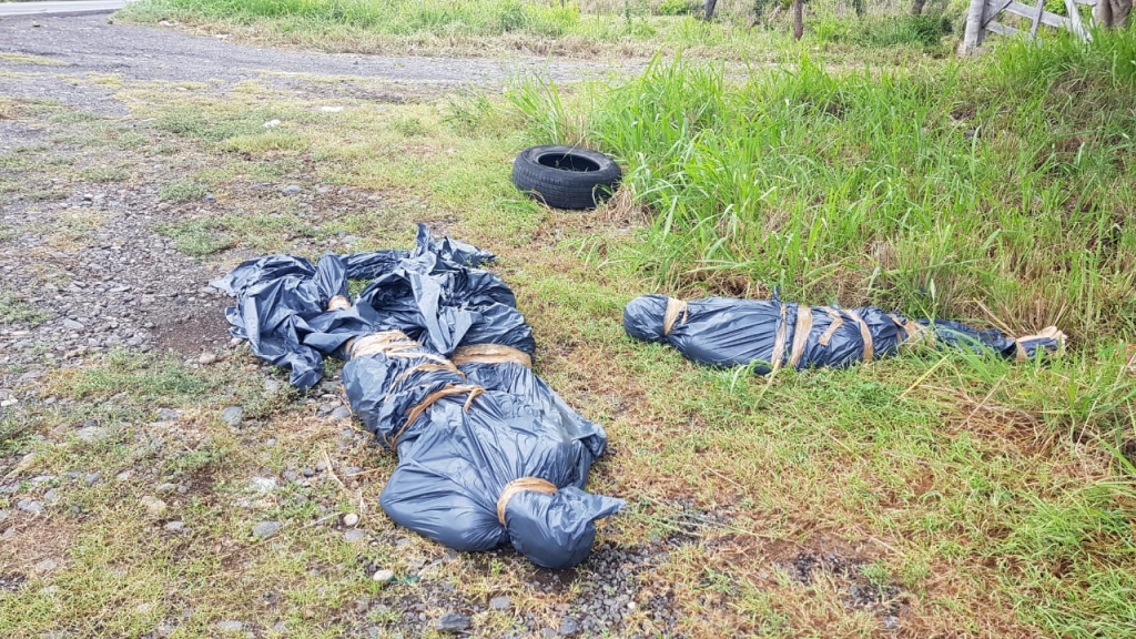 Mediante una llamada anónima autoridades fueron alertadas que a orillas de la citada carretera a la altura del puente Coralillos cerca de Palma Sola se encontraban bultos envueltos en bolsas negras en forma de cuerpos.