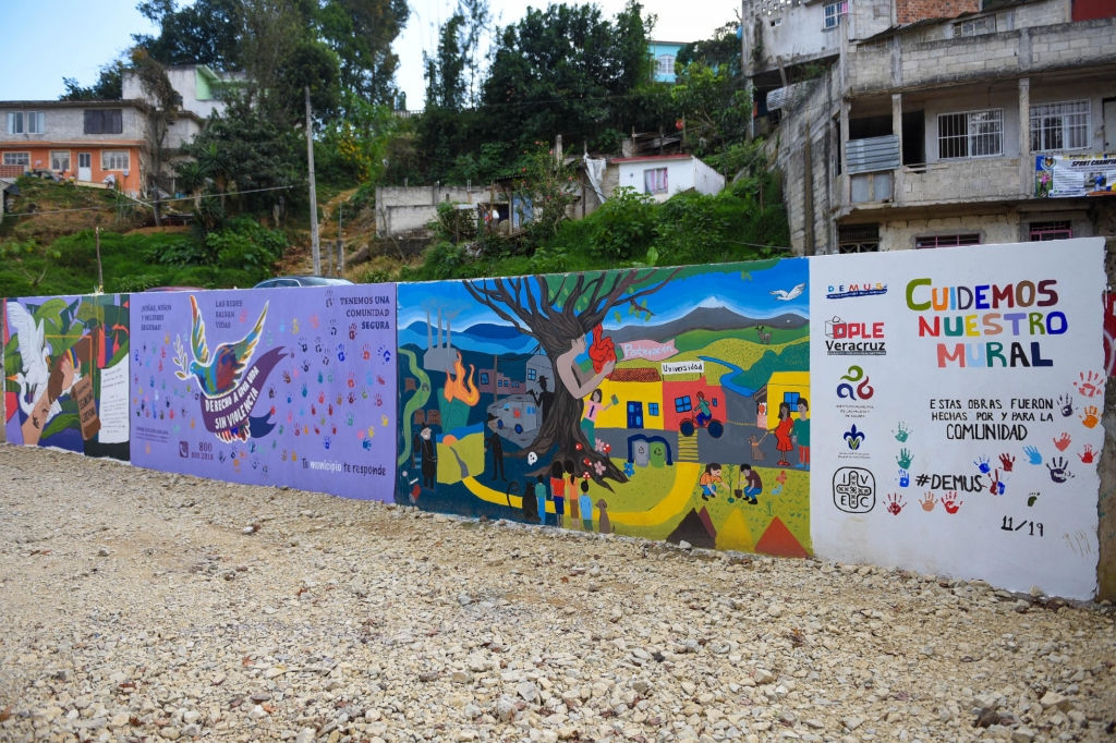 Contribuir a tener una sociedad con más seguridad, libre de violencia, participativa y con condiciones de igualdad es el propósito de los Murales comunitarios por la democracia, que realizaron mujeres en la zona del área deportiva Molinos de San Roque y que este miércoles inauguraron autoridades del Instituto Municipal de las Mujeres de Xalapa (IMMX) y del Organismo Público Local Electoral de Veracruz (OPLE).