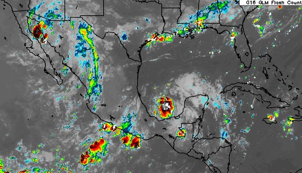 Hoy amanece con cielo parcialmente nublado en el norte, despejado a medio nublado en el centro y medio nublado a nublado en el sur. Observándose núcleos de tormenta en costa frente a los Tuxtlas.