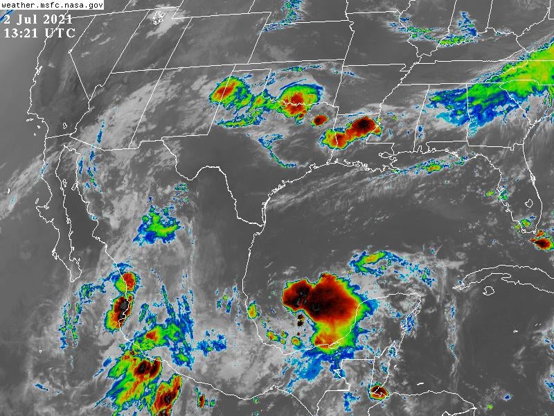 En las próximas 24 horas se esperas lluvias en la mayor parte del país con los máximos acumulados en el oriente de Sonora, oeste de Chihuahua, oeste de Durango, Jalisco, Michoacán, Ciudad de México, Morelos, Tlaxcala, Puebla, Veracruz, Guerrero, Oaxaca y Chiapas. Amplios sectores de la Península de Baja California, Coahuila, Zacatecas, Nuevo León, Tamaulipas, Durango, Zacatecas, Aguascalientes, Guanajuato, San Luis Potosí, y estados de la Península de Yucatán con baja o nula probabilidad de precipitaciones. Los valores de la temperatura máxima con poco cambio y con los valores más altos de la temperatura máxima en el norte de Baja California, noroeste y oeste de Sonora, norte de Coahuila, Nuevo León y Tamaulipas, así como algunos sectores de la Península de Yucatán. En costas del Golfo de México y mar Caribe se espera viento del sureste, este, noreste y norte con velocidades de 20 a 35 km/h y rachas de 40 a 55 km/h en costas de Texas, Sonda de Campeche y costas de Quintana Roo. En el litoral de Pacífico se pronostican las brisas normales en el resto. Asimismo, seguirán las rachas en las zonas de tormenta.